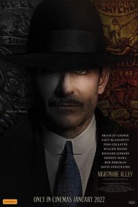 In Nightmare Alley, an ambitious carnival worker (Bradley Cooper) with a talent for manipulating people with a few well-chosen words hooks up with a female psychiatrist (Cate Blanchett) who is even more dangerous than he is. A film by Guillermo del Toro.